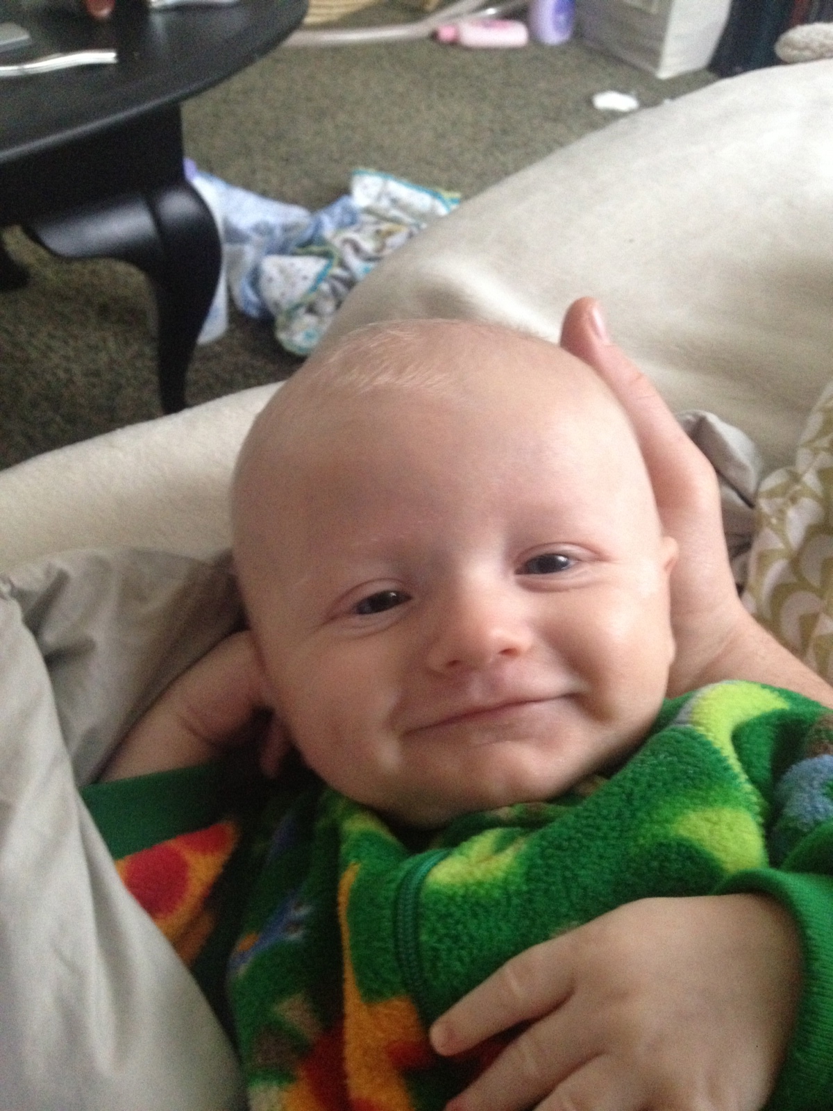 I'm not too worried that crawling will come too soon. He HATES being on his tummy. He also hates being taken out of his carseat. He can't stand peas, green beans, or being distracted by any other food while he's trying to play.